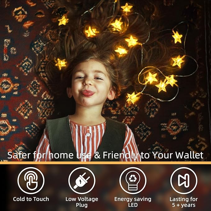 - Perfect for Any Decor: Ideal for decorating bedrooms, living rooms, gardens, patios, classroom , Christmas and more. Hang them around windows, walls, furniture, trees, or pergolas to instantly transform your environment into a starry paradise. These lights make an excellent gift for home decor enthusiasts who appreciate both style and functionality.