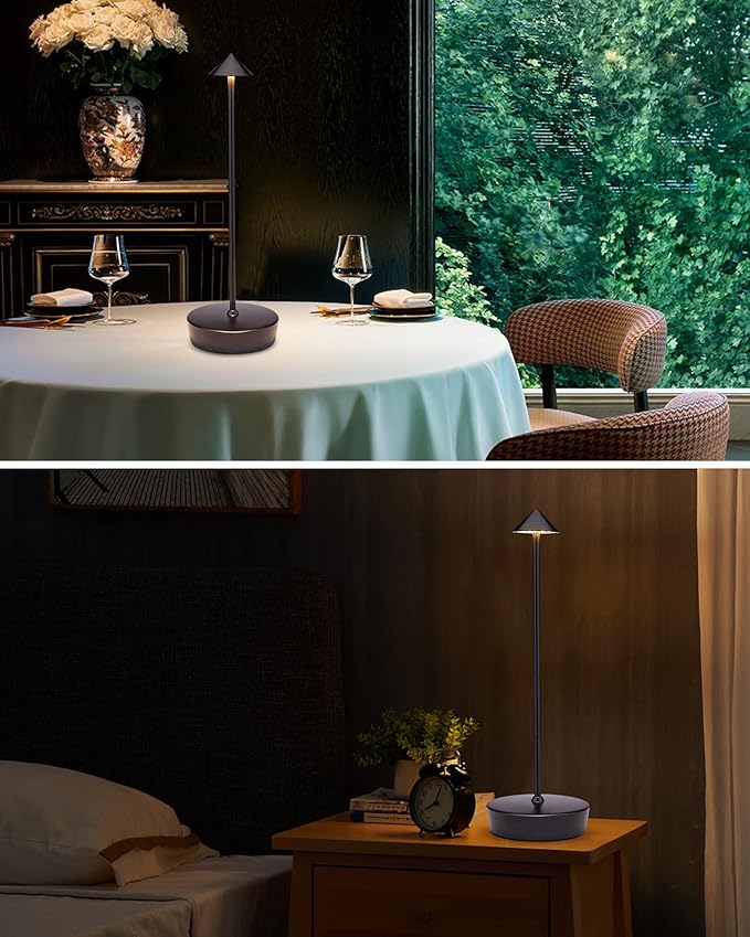 - 【Dimming and Switching Color Temperature】Our cordless table light has 3 colors light: white light, warm white light and warm light. Click on the top of the lamp to switch light colors. Long press for the brightness (10%-100%). With upgraded 20 led memory light source, which remembers the brightness you adjusted so you don't have to adjust it the next time you turn on the light.