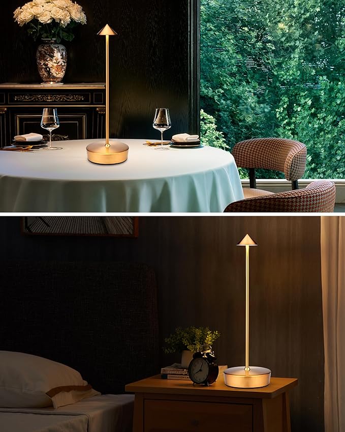 - 【Dimming and Switching Color Temperature】Our cordless table light has 3 colors light: white light, warm white light and warm light. Click on the top of the lamp to switch light colors. Long press for the brightness (10%-100%). With upgraded 20 led memory light source, which remembers the brightness you adjusted so you don't have to adjust it the next time you turn on the light.