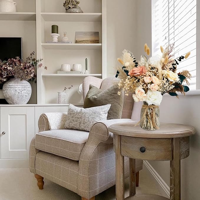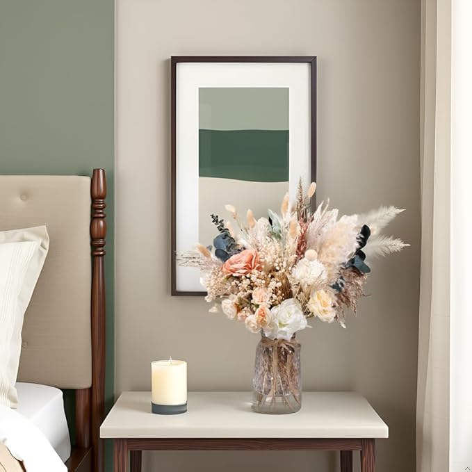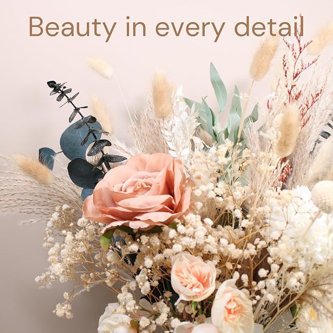 - Elegant Home Decor - Elevate your home decor living room with this stunning artificial flower and dried pampas grass floral arrangement set. Perfect for creating beautiful centerpieces for your dining table, kitchen island, living room coffee table, dresser top or entryway decor. The neutral tones and realistic design blend seamlessly with boho decor, Japandi home decor, and modern aesthetics, making this set a must-have for any stylish home.