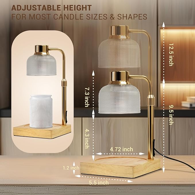 - ADJUSTABLE HEIGHT FIT VARIOUS CANDLES: Our candle lamp warmer comes with a adjustable pole,.you can easily customize the height according to your preference and the size of the jar candle. The height can be adjusted to 12 inches or lowered to 8.7 inches, no more worrying about candle size