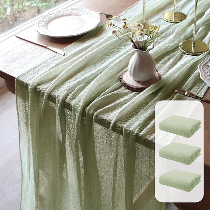 - [Perfect Size]: Get 3 pieces of sage green cheesecloth table runners, measuring 30 inches wide by 118 inches long, ideal for tables that are 3-4 feet long.