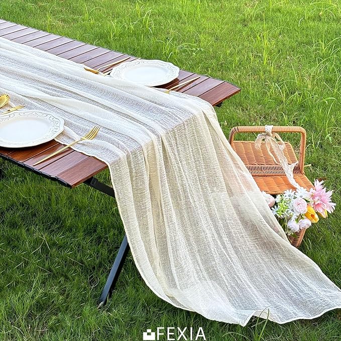 - [Premium Soft Material]: Made from high-quality polyester, this cheesecloth table runner is soft to the touch and durable. The sheer fabric flows gracefully, adding a romantic and elegant look to your table setup. It is wrinkle-free, fade-resistant, and reusable.