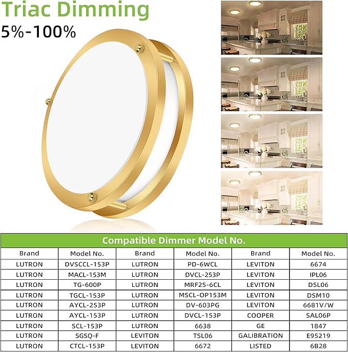 - COLOR CHANGING TEMPERATRUE(CCT) - The ceiling light emit selectable, you can preset your preferred light color temperature: soft white, bright white or daylight (3000K/4000K/5000K). Dimmable with triac dimmer.