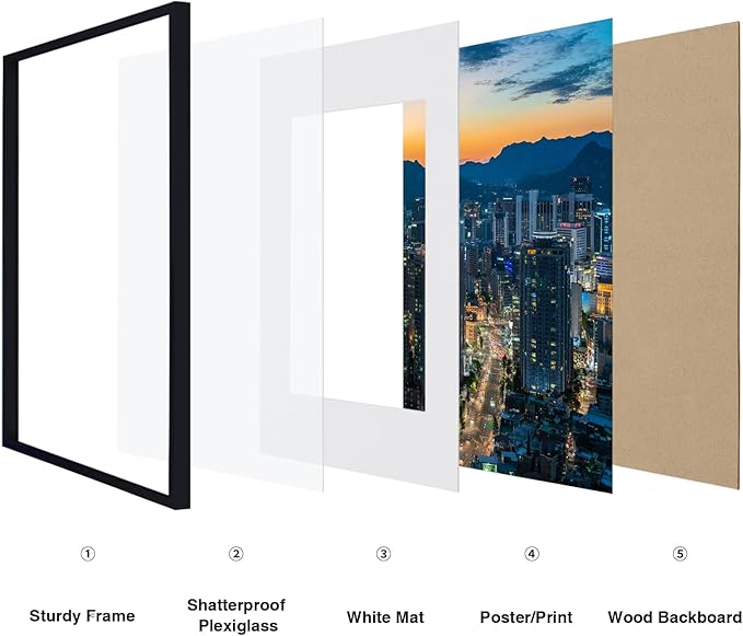 - Versatile Size Options: The frames include a removable white 20x30 inch mat for 20x30 posters and can fit 24x36 inch pictures without the mat, catering to different picture dimensions