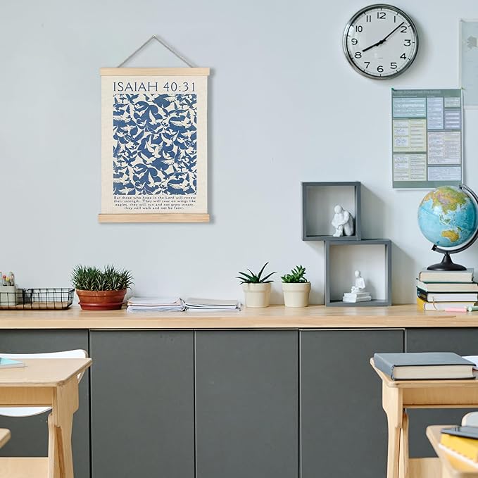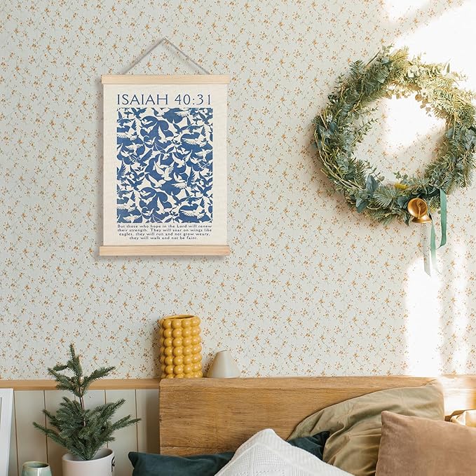 Supwhd Isaiah 40:31 Eagles Christian Wall Art with Wooden Poster Hanger, God is Good Bible Verses Posters Wall Art Decor, Christian Wall Decor for Home Room, 16x24