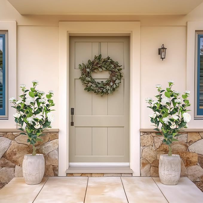 - ✔REALISTIC & LIFELIKE DESIGN: Bring home the timeless beauty of spring with our artificial camellia tree. This fake plant features white blooms and vibrant green leaves that capture the essence of the real flower. Perfect as a standalone statement piece or mixed with other artificial flowers, it adds a touch of elegance to any setting. Its realistic appearance makes it ideal for both indoor spaces and sheltered outdoor areas like a covered patio, bringing nature's charm without any upkeep