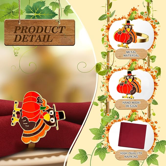 - Thanksgiving Decorations;These napkin rings are designed for Thanksgiving, Halloween, and fall festive,Anillos para servillede de día de acción de gracias make your dining table look more ambivalent