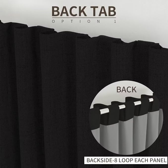 Joydeco Natural Linen Curtains 90 inch Length 2 Panels Set Burg 100% Blackout Patio Door Curtain Room Darkening Sliding Door Curtains Thermal Insulated Back tab Rod Pocket(105x90 inch, Black)