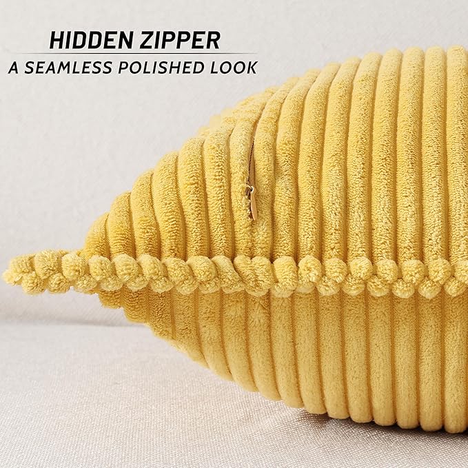 Mecatny Corduroy Throw Pillow Covers 24x24 Set of 2, Neutral Decorative Soft Boho Couch Pillow Covers with Broadside for Sofa Living Room, Mustard Yellow