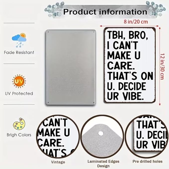 - π SASSY "TBH" HUMOR: "TBH, BRO, I CAN'T MAKE U CARE" β this relatable, laugh-out-loud sign adds a dose of comedy to any classroom or study room! Perfect for teachers and students who appreciate blunt, funny honesty