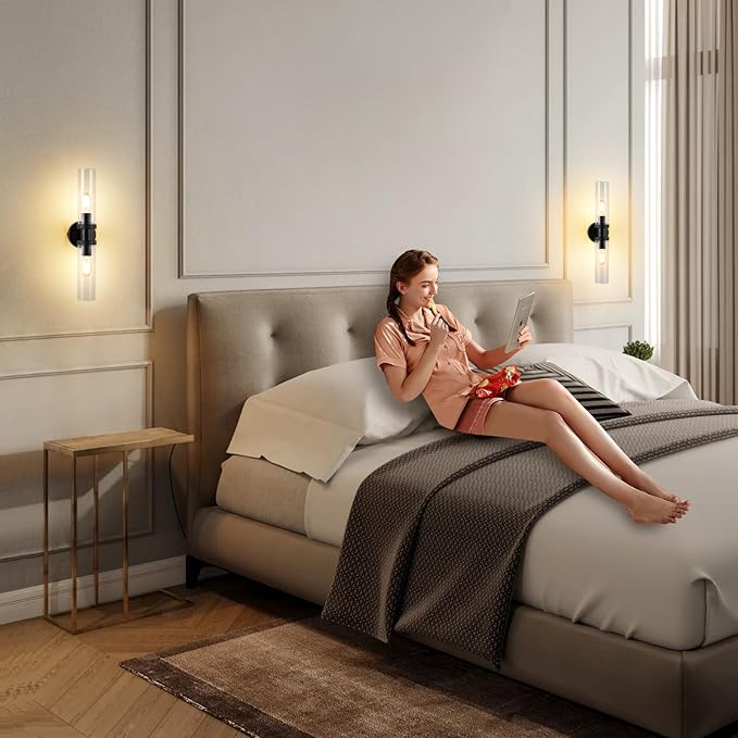 2 Light Vanity Light Side Mirror Farmhouse Bathroom Fixtures Black, E26 Wall Lamps for Bedroom, Industrial Lighting, Modern Lights With Glass Shade