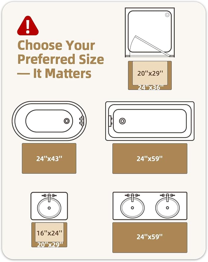 - BEAUTIFUL DÉCOR AND FUNCTIONAL: Designed in simple geometry patterns and in neutral colors, this bathroom carpet can go with different kinds of decor style; having lots of sizes to choose from, small, standard, large or runner, you can easily find one to fit in front of the single or double sinks, showers, bathtubs, vanities and more