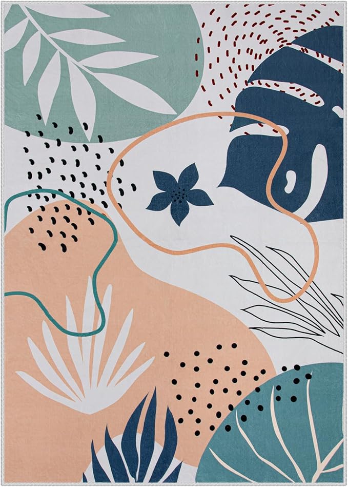 Lahome Machine Washable Rugs 8x10 - Ultra-Thin Soft 8x10 Rugs for Living Room Non-Slip Large Bedroom Rug, Boho Botanical Print Indoor Stain Resistant Floor Rug for Dining Room Table Office