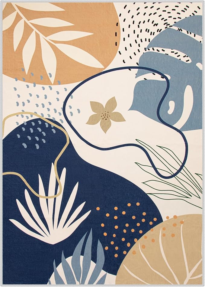 Lahome Rug for Living Room - 5x7 Area Rug Washable Non-Slip Bedroom Carpet Ultra-Thin Throw Cute Soft Kids Nursery Rug, Boho Botanical Print Stain Resistant Indoor Rugs for Dorm Entryway Office
