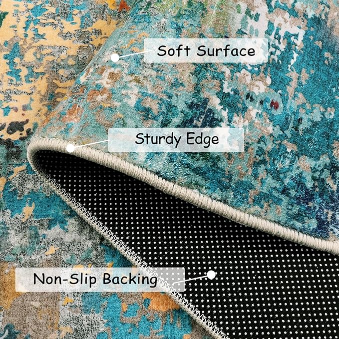 - [Modern Abstract Area Rug] - Add a pop of color to your living room or bedroom with this area rug. Designed with a delicate palette, this collection impresses with an abstract print with splashes of red, blue, yellow