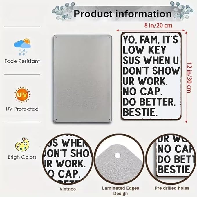- Perfect Gift for Students and Teachers: This quirky and fun tin sign makes an excellent gift for students and teachers alike, offering a lighthearted reminder about the importance of showing your work