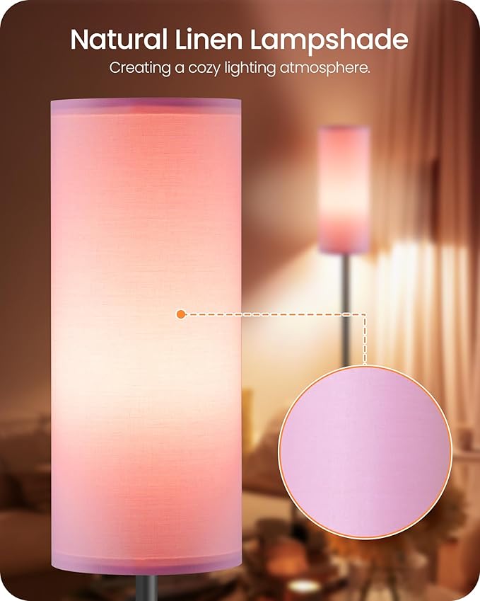 - Soft Ambient light: The linen lampshade gives off a warm glow, diffuses bright bulbs nicely, making any room feel inviting and calming. The sleek black pole and pink lampshade add cozy ambiance to your couch area or dark corners. Whether in the living room, bedroom, or office, this tall reading lamp for office can easily fit into any decor and enhances the ambiance. Find the different color lamp that matches your room's color scheme