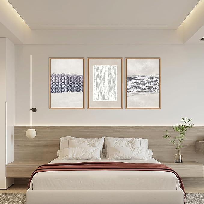 - 【Easy to Hang】16×24 inches×3pcs (40×60cm×3pcs) neutral abstract waves lines landscape frame set is easy to hang, ready to use, with metal hooks and non-marking nails. It takes only 5 minutes to finish hanging.