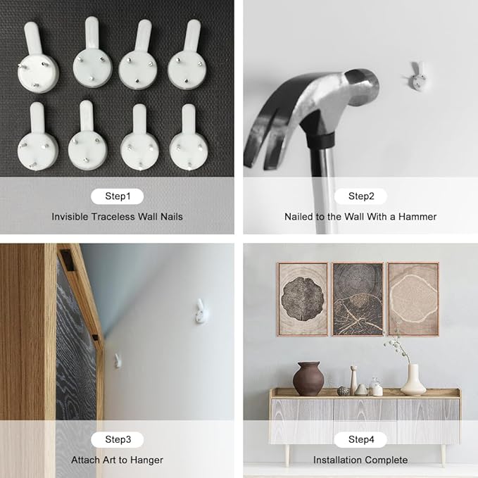 - 【Easy to Hang】16×24 inches×3pcs (40×60cm×3pcs) neutral wood stump landscape frame set is easy to hang, ready to use, with metal hooks and non-marking nails. It takes only 5 minutes to finish hanging.