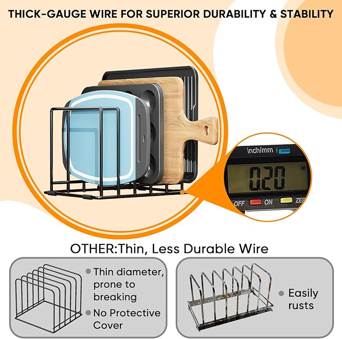 - ๐๐๐ฌ๐ข๐ ๐ง๐๐ ๐๐จ๐ซ ๐๐๐ค๐๐ฐ๐๐ซ๐, ๐๐จ๐จ๐ค๐ข๐ ๐๐ก๐๐๐ญ๐ฌ & ๐๐จ๐ซ๐: Upgrade your kitchen storage with this versatile 5-slot organizer, engineered for baking sheets, cookie trays, muffin pans, and even cutting boards. Whether you bake weekly or daily, this rack keeps your essential bakeware neatly upright and instantly accessible.