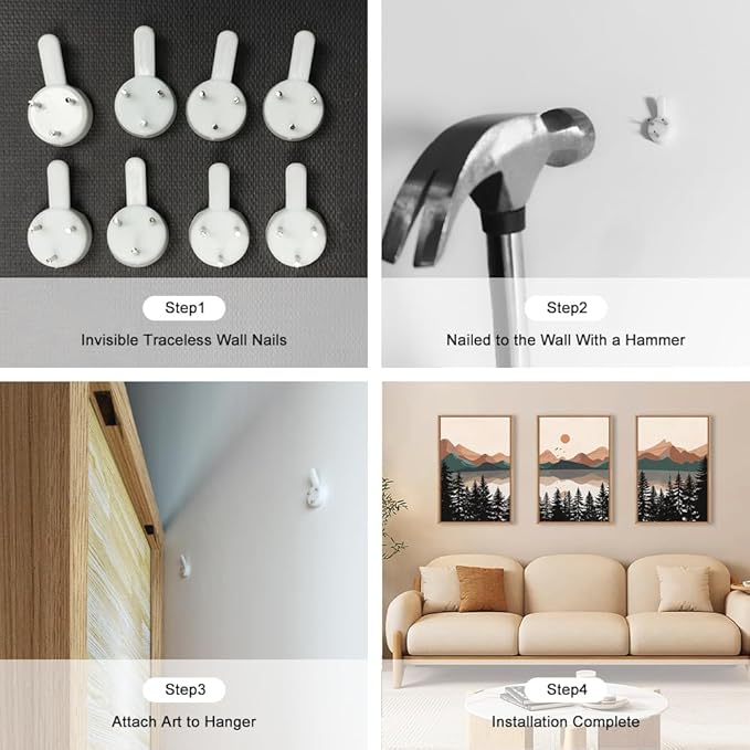 - 【Easy To Hang】The framed artwork set of 16"x24" is easy to hang. Begin by determining the desired location, ensuring it is level and aligned with your preferences. Then, using the included non-trace nails, securely attach the frame to the wall. It will only take about 5 minutes for you to hang it up.