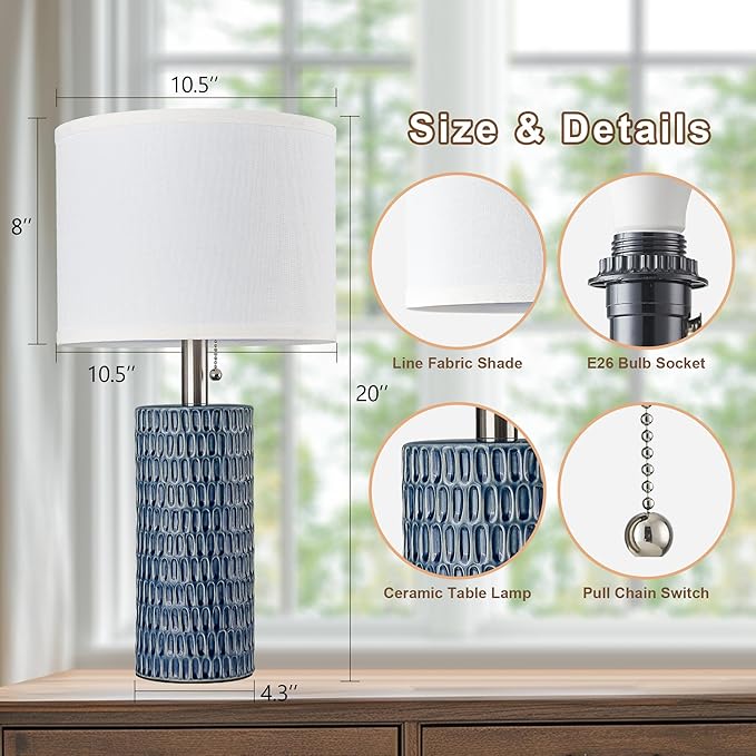 - Ideal Size&Perfect Present :20"(H)x 4.3"diameter at bottom,If you are looking for a great value present for your friends and familys , this gorgeous ceramic table lamps will be your great option.adding modern,farmhouse,vintage and rustic feeling.