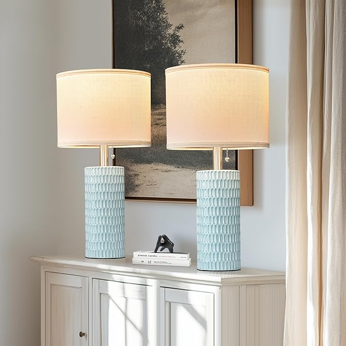 Table Lamps for Living Room Set of 2, Ceramic Table Lamps for Bedroom, 20" Modern Lamps for Night Stands, Blue