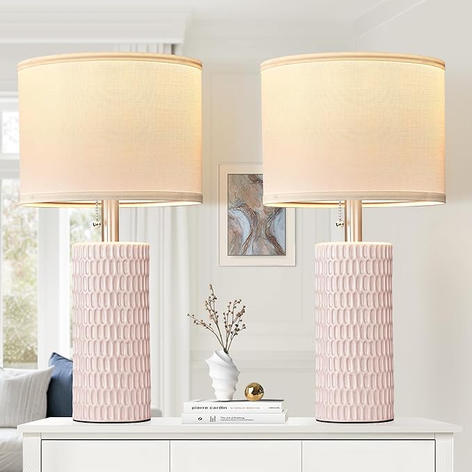 Table Lamps for Living Room Set of 2, Ceramic Table Lamps for Bedroom, 20" Modern Lamps for Night Stands, Pink