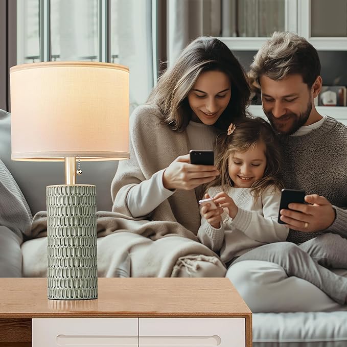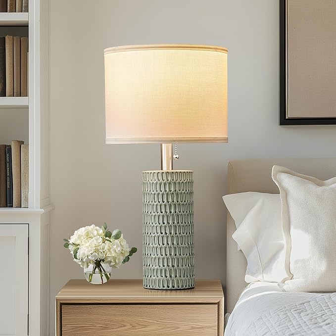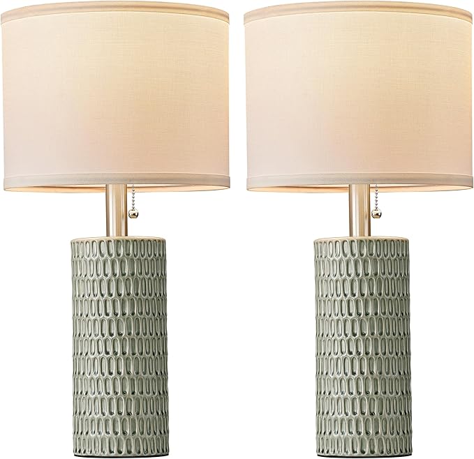 Table Lamps for Living Room Set of 2, Ceramic Table Lamps for Bedroom, 20" Modern Lamps for Night Stands, Green