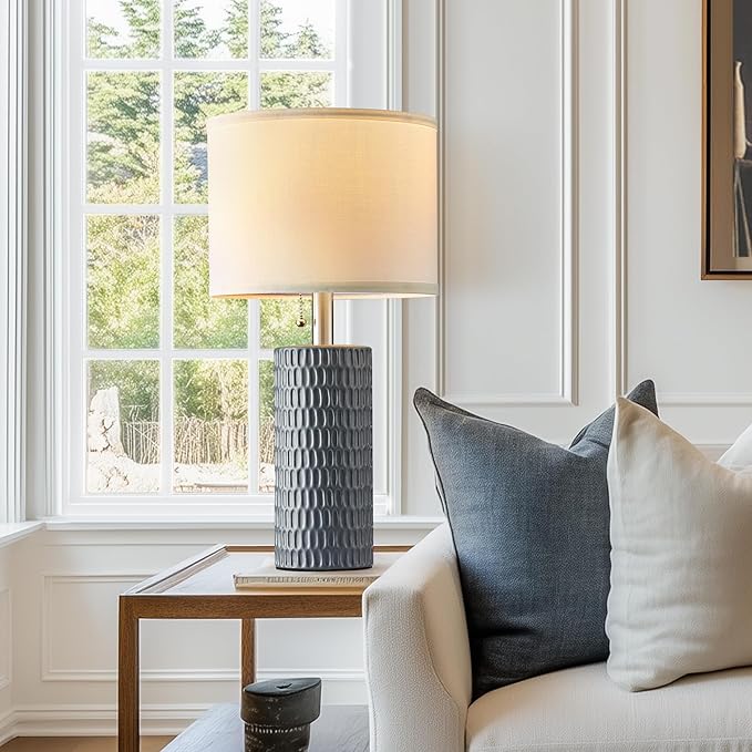 Table Lamps for Living Room Set of 2, Ceramic Table Lamps for Bedroom, 20" Modern Lamps for Night Stands, Grey