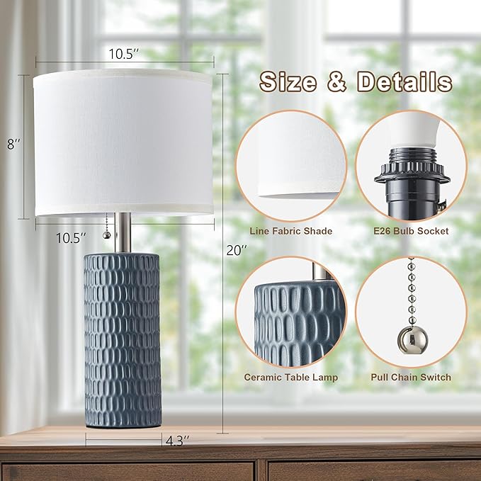 - Ideal Size&Perfect Present :20"(H)x 4.3"diameter at bottom,If you are looking for a great value present for your friends and familys , this gorgeous ceramic table lamps will be your great option.adding modern,farmhouse,vintage and rustic feeling.