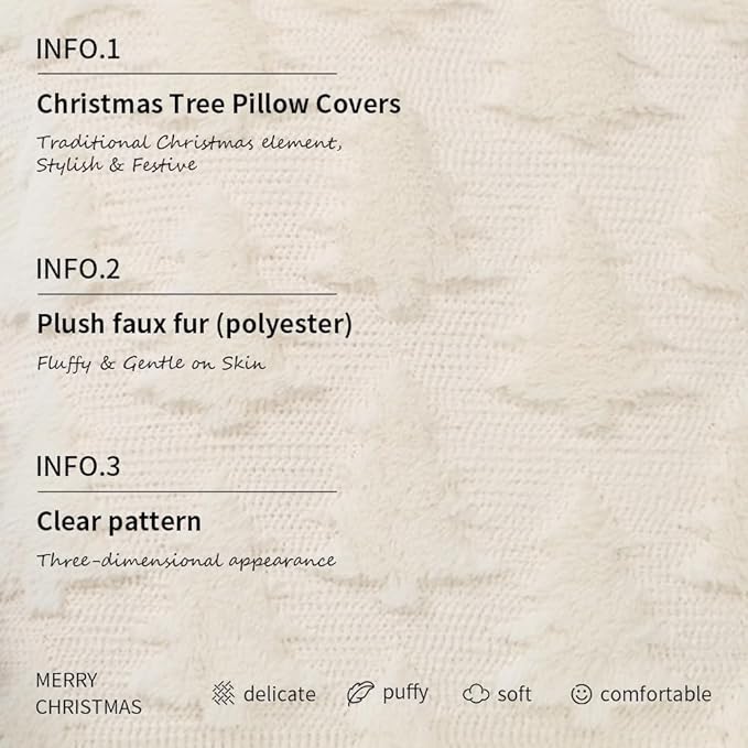 GEEORY Christmas Tree Throw Pillow Covers 18x18 Inch Set of 2, Xmas Winter Soft Plush Faux Fur Wool Decorative Farmhouse Holiday Cushion Case for Home Decoration (Off-White GC004-18