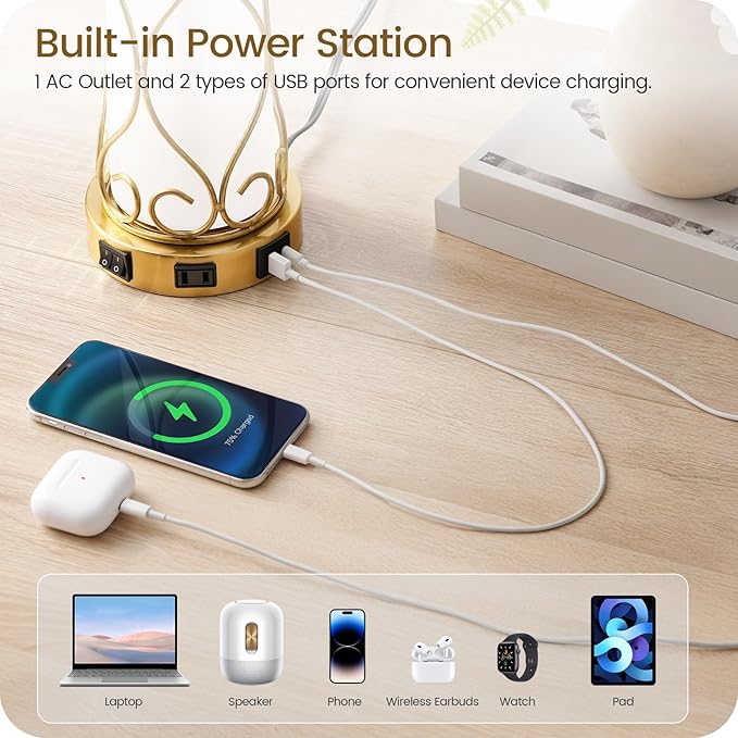 - USB A+C Charging Ports & AC Outlet: The desk lamp comes with an AC outlet, a USB-A and a USB-C port, with 5V 2.1A safe current output, making it easy to charge your phone and tablet. Even when the lamp is off, it can still provide electricity as long as it is connected to power