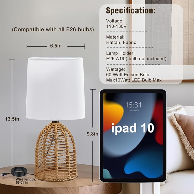 - Small Lamps Decorative: Measuring at 13.5x6.5 inches, these small rattan lamps are designed to fit in small spaces that require additional lighting. Whether it's a self-study area, small dorm, apartment, bathroom, kids' room, nursery, or side table, these lamps for living room end tables are compact and convenient for any setting.