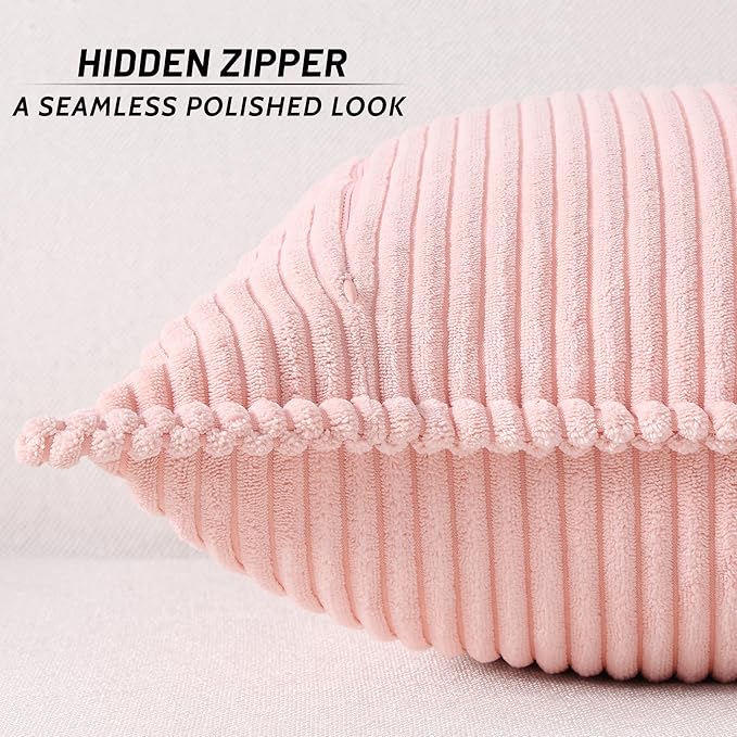 Mecatny Corduroy Throw Pillow Covers 22x22 Set of 2, Neutral Decorative Soft Boho Couch Pillow Covers with Broadside for Sofa Living Room, Pink