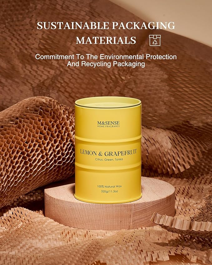 - ๐ Sustainable Material - M&SENSE candles are all crafted with the finest and most natural ingredients. Using high-end vegetable wax and unbleached cotton wicks in a reusable and recyclable tin. Packaged in recycled honeycomb paper and cardboard box for a more sustainable future.