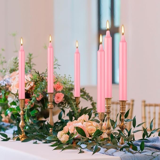 Set of 40 Pink Candles – Premium Mini Taper Candles for Valentine's Day,Wedding,Rituals, Prayer, Birthdays, Meditation, Altar -0.5X4 Inch Tall, Unscented (Pink)