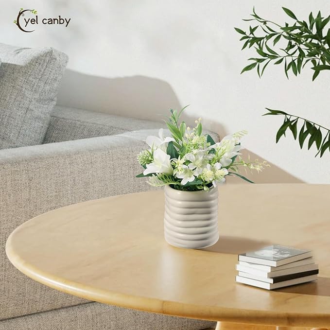 Small Fake Plants Potted Artificial Plants Indoor with Ceramic Pot Mini Faux Plants Artificial Greenery Flowers for Bedroom Bathroom Plants Home Office Room Coffee Table Decor(Lilies)