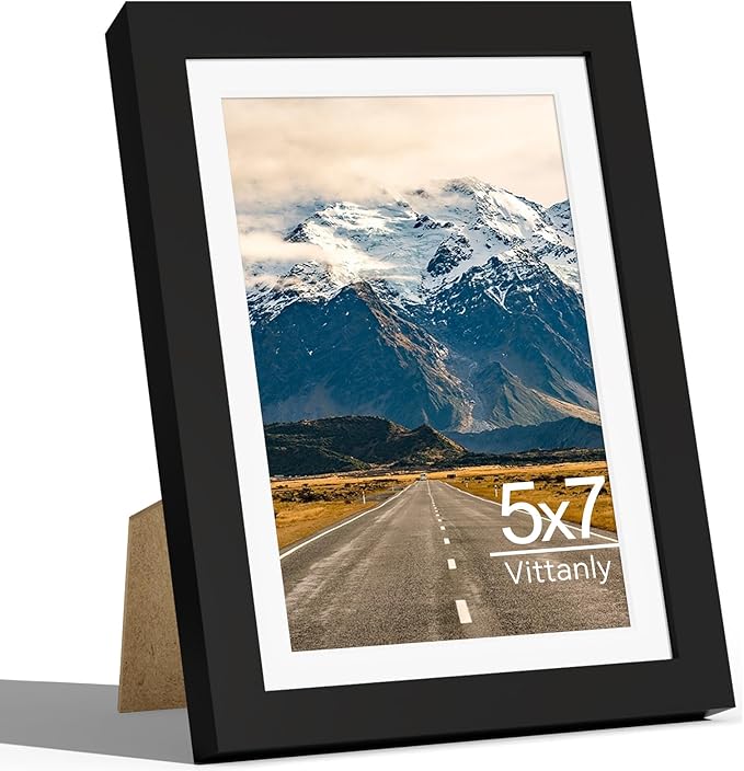 Vittanly 5x7 Picture Frame, Display Picture 4x6 with Mat or 5x7 without Mat, Photo Frame for Wall or Tabletop, Perfect for Home Decor and Presents, Black, 1 Pack