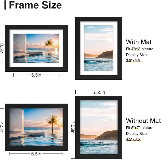 - Versatile Size Options: The 5x7 frame include a removable white 4x6 inch mat for 4x6 pictures and can fit 5x7 inch pictures without the mat, catering to different picture dimensions