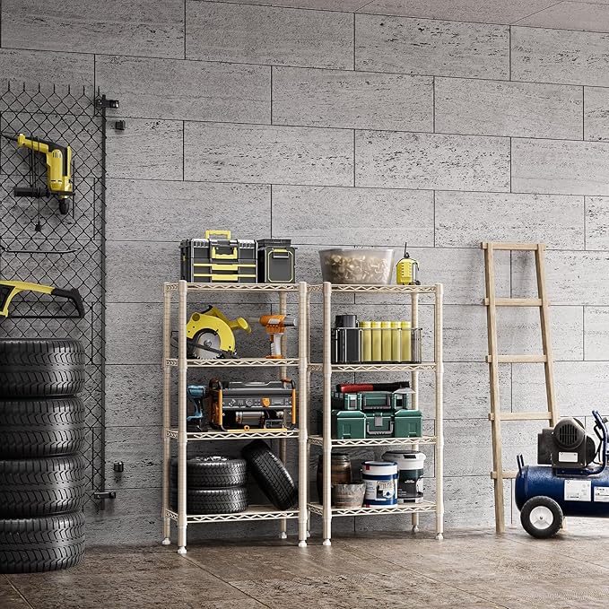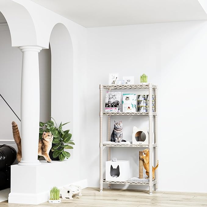 1000 lbs 4-Shelf Standing Storage Shelves Heavy Duty Metal Shelving Unit Adjustable Wire Rack for Office Garage Kitchen, Light Tan 11.8 D x 23.6" W x 47.5" H