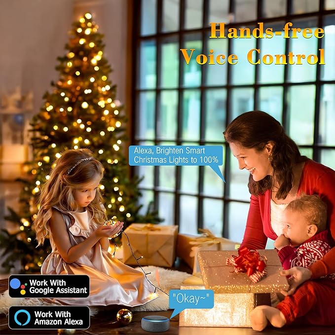 - 【Sync with Music】The smart Christmas lights feature a built-in high-sensitivity microphone offering dynamic audio sync, watch your lights dance to music, and enjoy the party with your loved one, friends, or family!