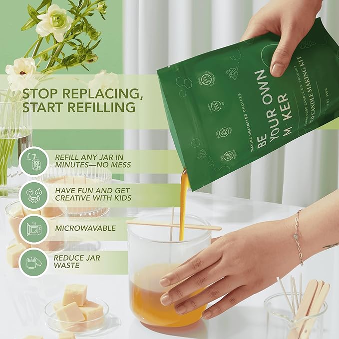 - REUSABLE JARS: Each candle scent comes with a refill option to give our iconic jars a second life. Once the wax has burned down, simply use our Eco Candle Making Kit to refill the jars with any scent you like, helping to reduce waste. Plus, with every purchase, a tree is planted. *Please note that the kit is sold separately. *