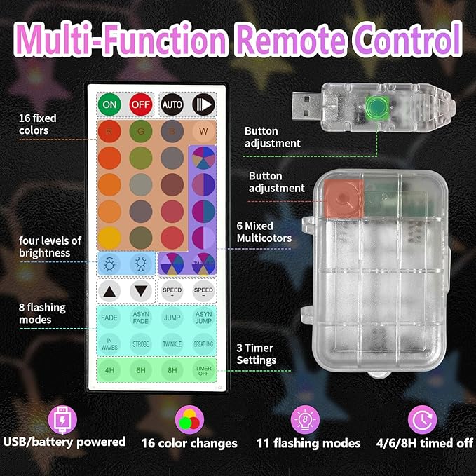 - MULTI-FUNCTION REMOTE CONTROL: The color-changing globe string lights, which come with a 44-button remote, have adjustable 18 light colors and 11 flashing modes, offer 4/6/8 hour timed shut-off, can be remotely controlled from up to 8 meters, and are also adjustable at the USB plug, enabling easy control of the light strings at any time.