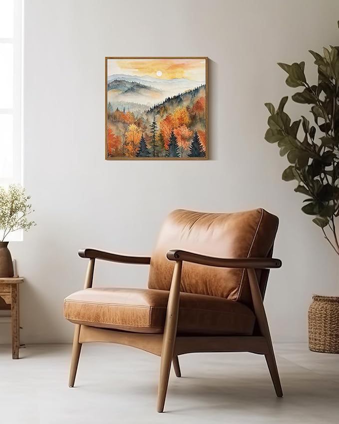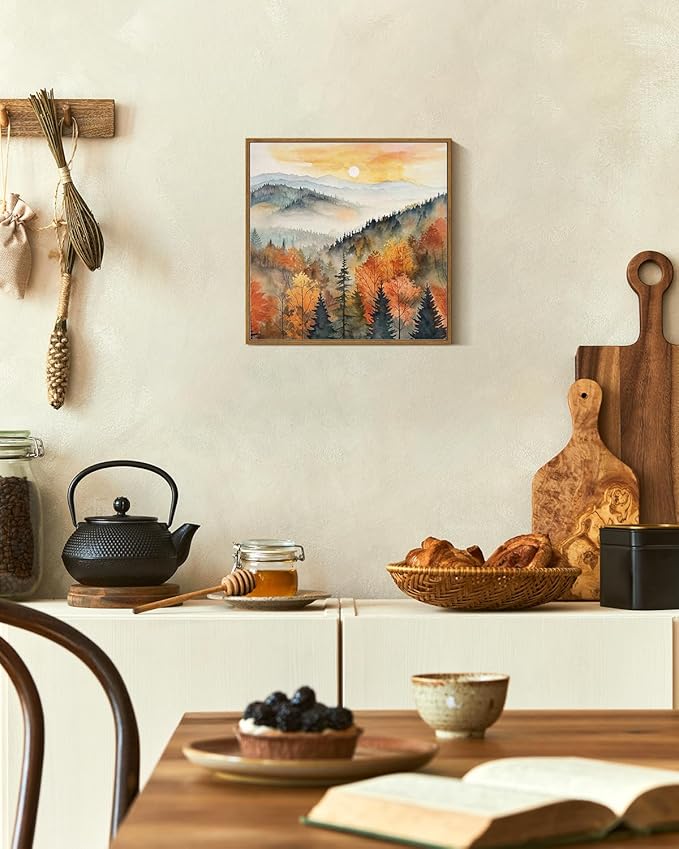 InSimSea Square Framed Canvas Wall Art, Farmhouse Nature Scenery Quiet Forest Awakening Wall Art Prints, Autumn Fall Classical Retro Home Decor for Living Room Bedroom Office 16"x16"