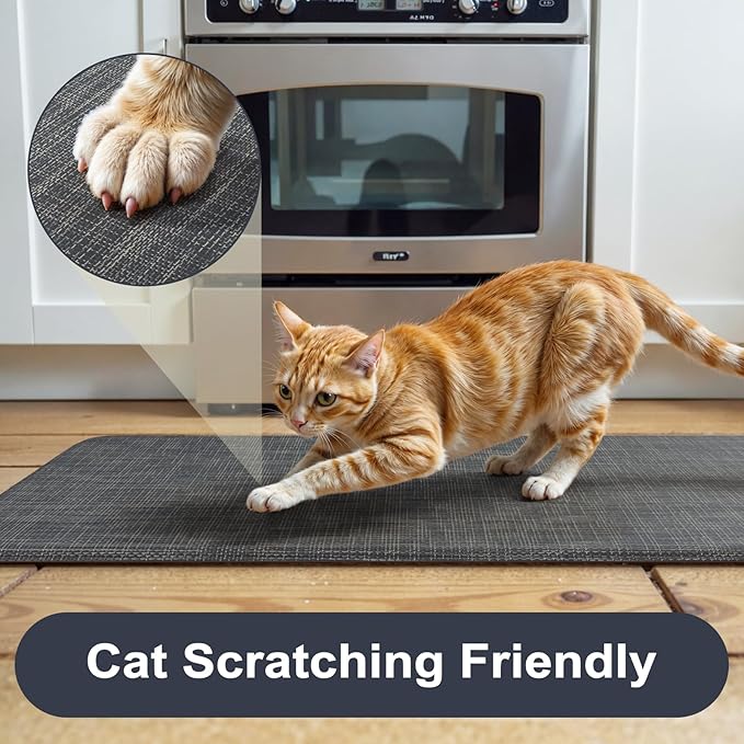 - More Scratch-resistant:With textilene surfaces kitchen Floor mats protect against scratches from pets and sharp objects. Also, the rugs are waterproof and easily cleaned,Simply wiping the floor mat with a damp cloth or sponge or use a hand-held vacuum as needed, save your time and energy