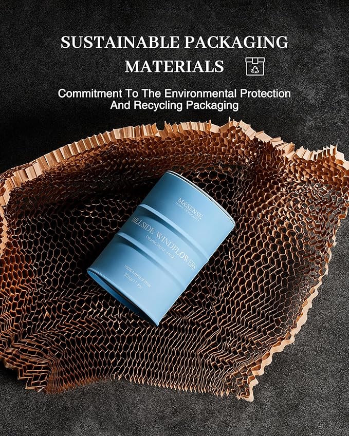 - ๐ Sustainable Material - M&SENSE candles are all crafted with the finest and most natural ingredients. Using high-end vegetable wax and unbleached cotton wicks in a reusable and recyclable tin. Packaged in recycled honeycomb paper and cardboard box for a more sustainable future.