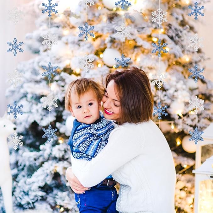 - 【Package Contains】6 sets of the party banner garland,each is 5.41feet/ 1.65 meters long, total length is 32.46 feet/ 9.9 meters.Every Banner has 6pcs snowflake,the size is 10cm(3.93").