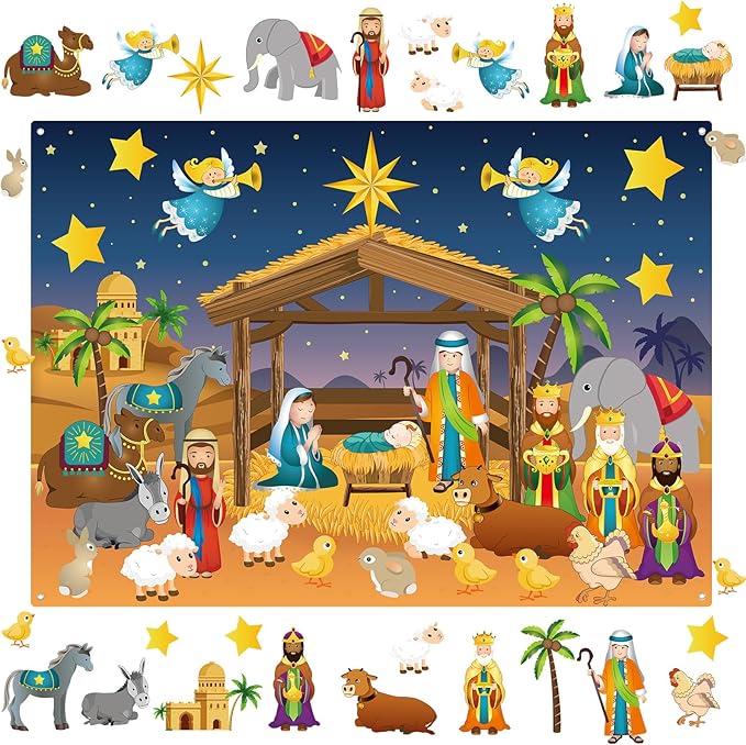 - Package Inclusion: Our package includes a 3.4ft nativity felt and 31 easily detachable ornaments. These Christmas detachable ornaments come in various fun and classic Christmas symbols, offering plenty of choices for boys and girls decorate their nativity felt